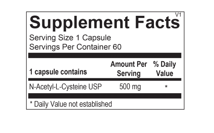 Each capsule of the N-Acetyl Cysteine formulation includes 500 mg of this versatile amino acid.