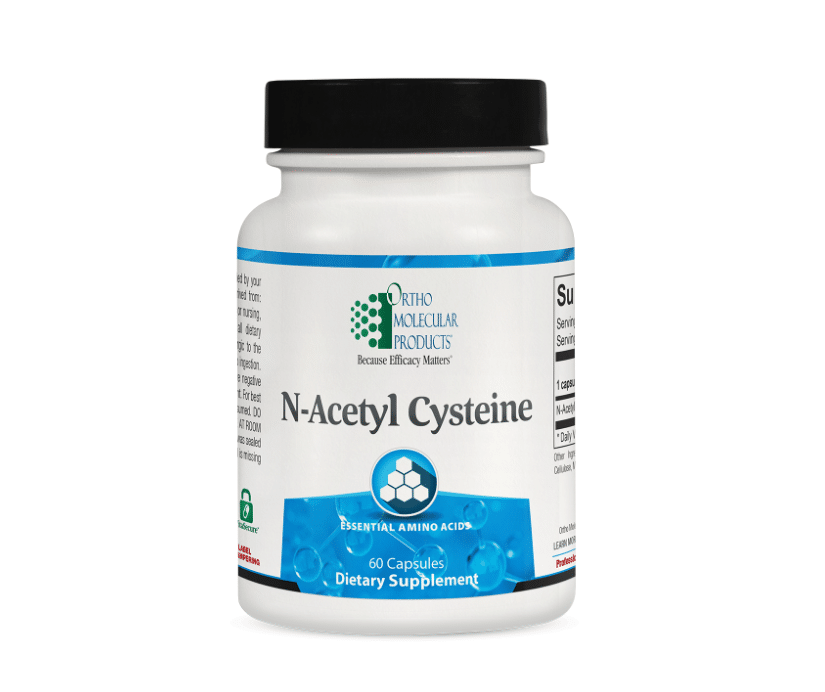 N-acetyl cysteine (NAC) is an amino acid that boosts antioxidant function and is a source of the conditionally essential amino acid L-cysteine. It has also been found to raise glutathione levels. Glutathione is an important antioxidant used in many different metabolic processes within the body. Maintaining adequate levels is important to maintaining the health of the respiratory, hepatic, and immune systems. It is also important in supporting antioxidant protection of lipids and proteins and supporting the normal response to inflammation. NAC is commonly used as an agent to help clear sinus and airway congestion caused by mucus overproduction. It also supports antioxidant and cellular detoxification pathways in the body.